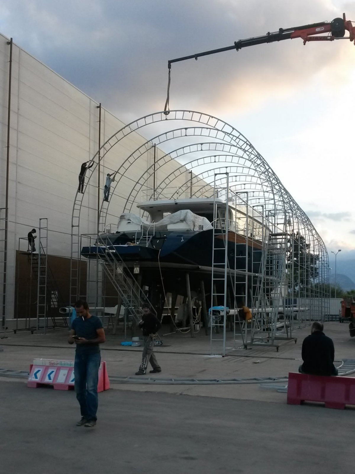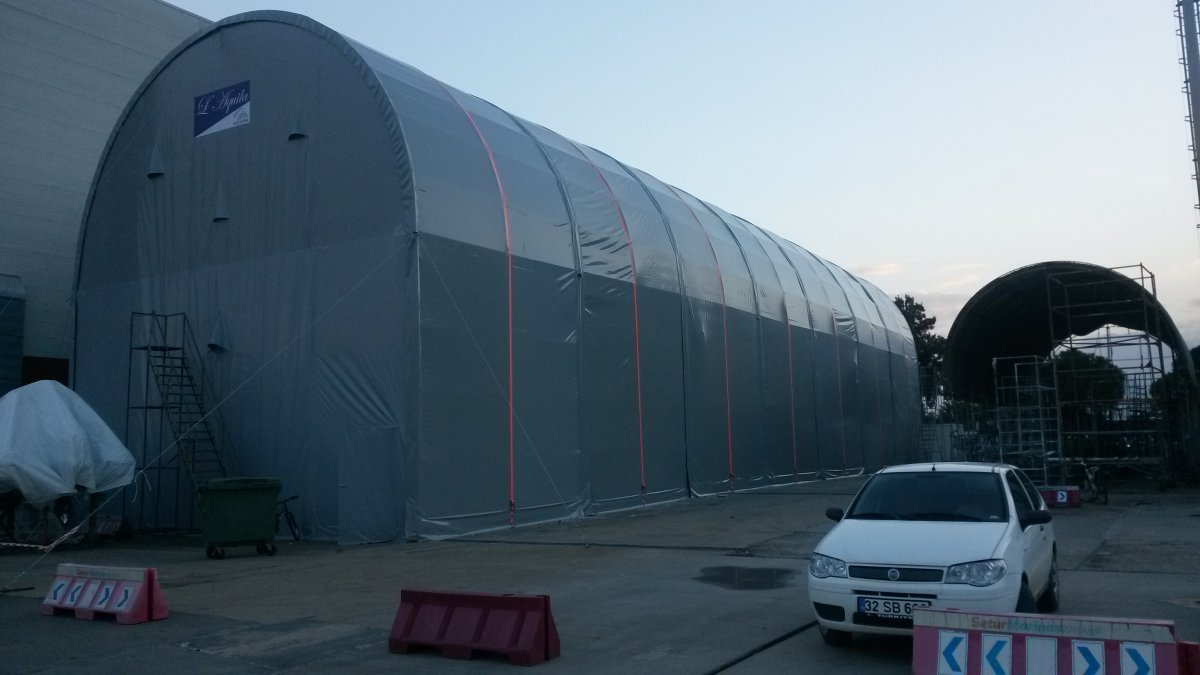 Yat Bakım Hangarı; Çelik konstrüksiyon, branda imalatı ve montajı tarafımızdan yapılmıştır.